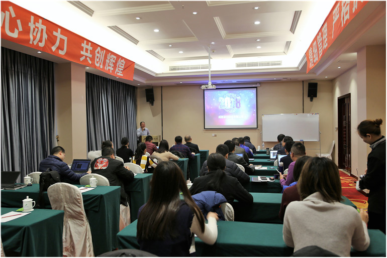 2018年1月5日,成都涵行科技有限公司2017年度工作会议在乐山世纪嘉源大酒店胜利召开。会议历时四天,在会议期间,戴总就全公司2017年的工作情况进行了总体回顾,提出了2018年的全公司目标,为了达成目标,戴总要求全体全体员工在2018年进一步完善团队建设,进一步健全和完善产品培训机制,进一步规范化管理团队,提高执行力。为了达成目标,要求全员严格执行公司的规章管理制度,并特别就CRM系统的规范使用制定了严格的要求和考核细则。会议期间,全体员工对自己在2017年的工作情况作了汇报,制定了2018年的工作目标。为了提升业务能力,公司还举行了产品知识演讲比赛。会议于2018年1月8日胜利闭幕。